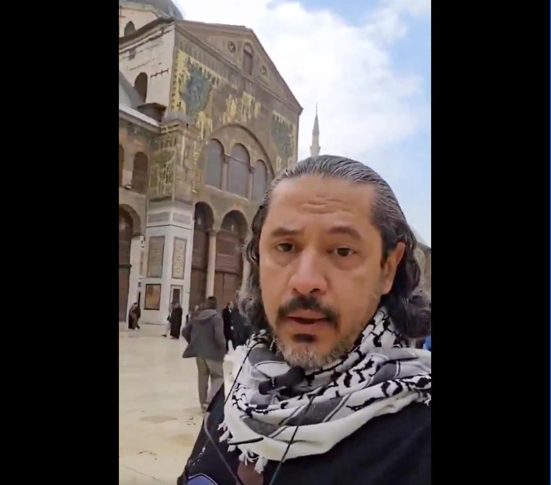 Standing outside the Umayyad mosque in Damascus wearing a Palestinian keffiyeh, Al-Qaradawi filmed a short video in which he said: “We pray that the Syrian people and their new leaders succeed in confronting all the evil challenges that the world is planning. At the forefront of the planners and conspirators are the shameful Arab regimes and the Arab Zionists—the UAE, Saudi Arabia, and Egypt. And we tell them: ‘You won’t be able to do anything in the face of the flood of change, which began on October 7, 2023 in Gaza.’” The clip was shared widely on social media.