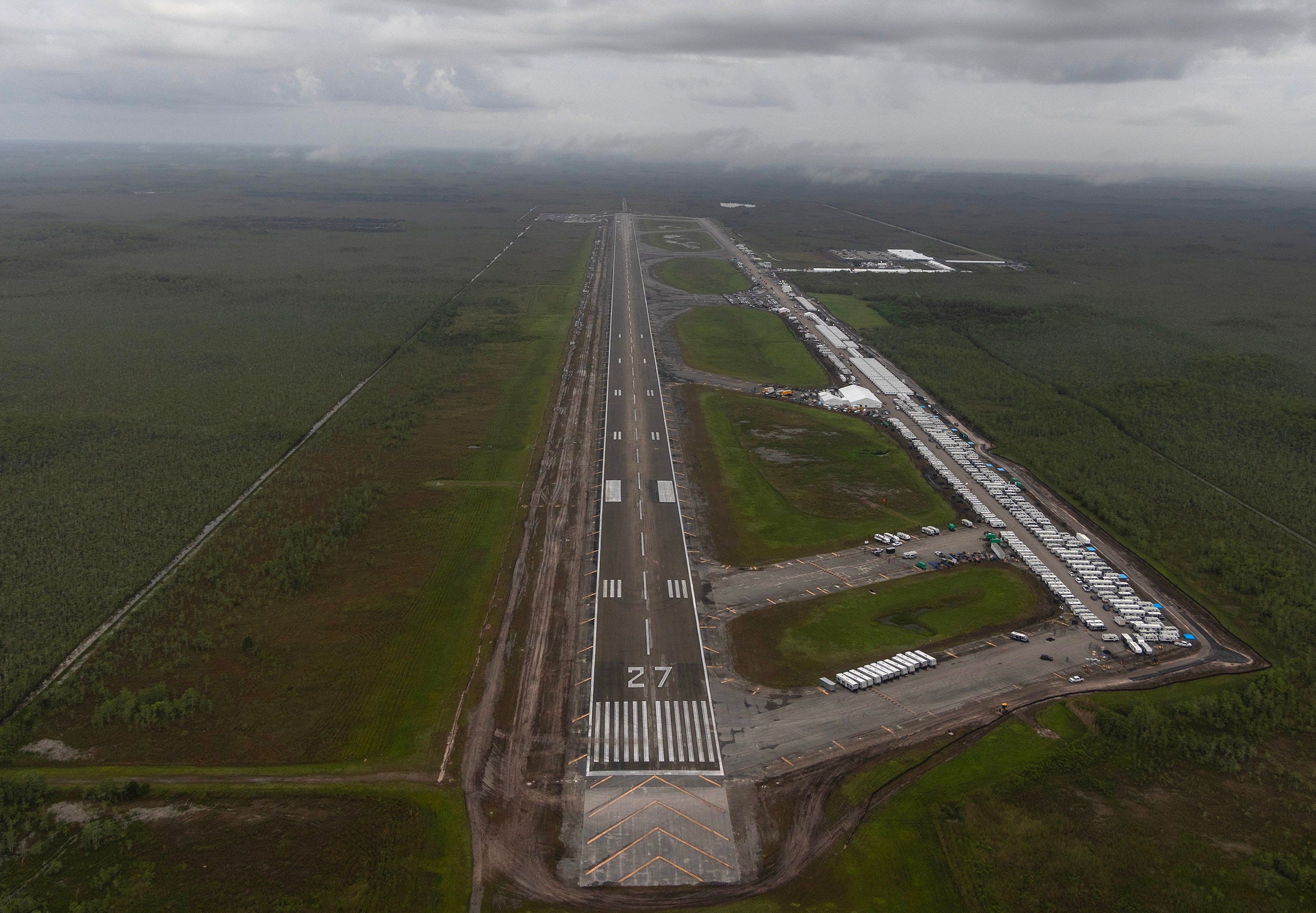 The facility is located 45 miles west of Miami at a remote airfield in the Florida everglades with a 10,500-foot runway. In a video posted on X, Florida Attorney General James Uthmeier said of the new ICE detention center, “You don’t need to invest that much in the perimeter. People can get out and there’s not much waiting for them other than alligators and pythons; nowhere to go, nowhere to hide.” Uthmeier also posted on X Wednesday, July 2, saying the facility is now open: “Alligator Alcatraz will be checking in hundreds of criminal illegal aliens tonight. Next stop: back to where they came from.” He also told the Associated Press they plan to have “5,000 immigration detention beds by early July.”