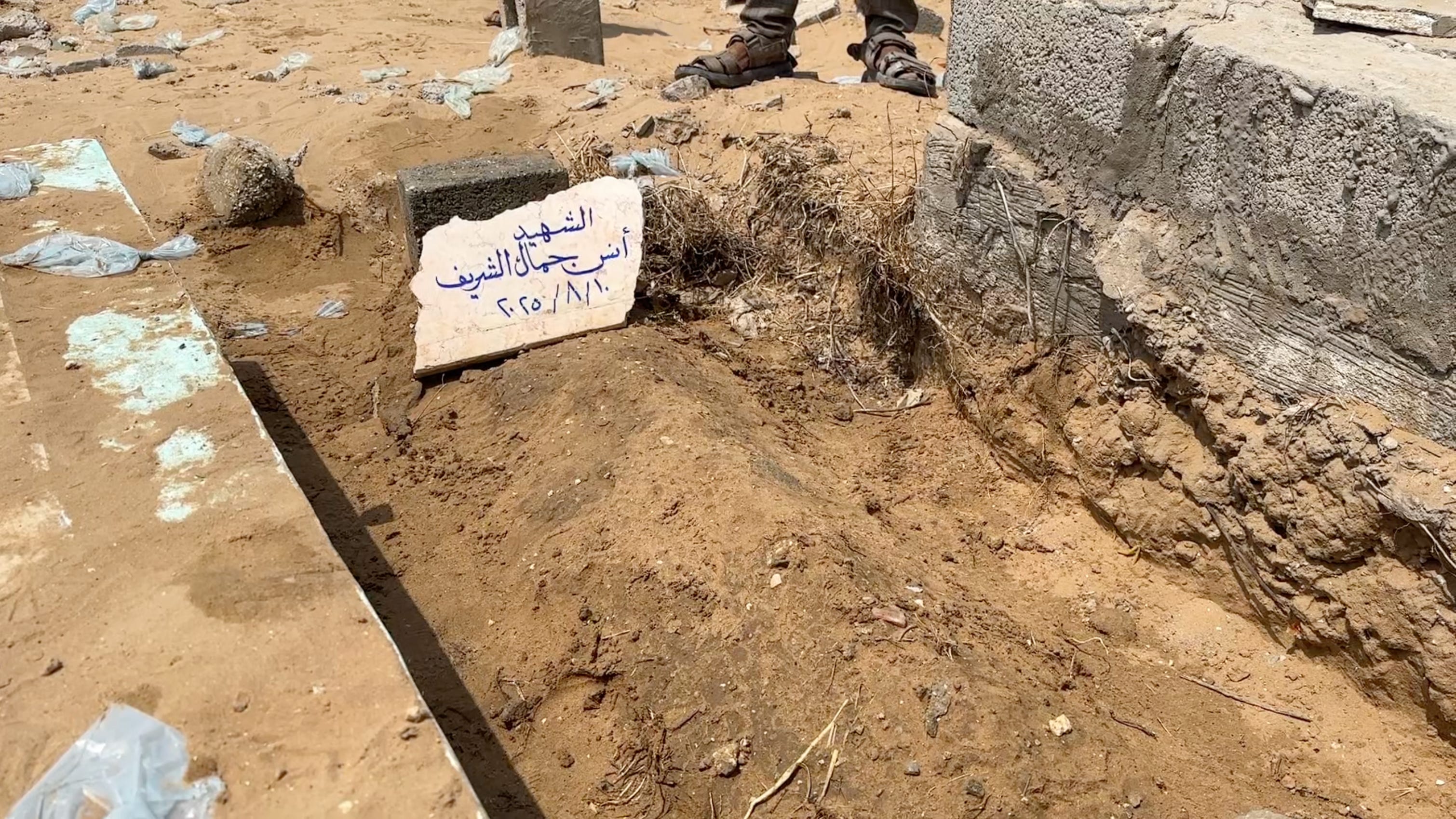 GAZA CITY—The prominent Palestinian journalist Anas al-Sharif was buried in Gaza City on Monday, a broken slab of rock used as a headstone, one day after his assassination by the Israeli military. Five other journalists —four from Al Jazeera, Mohammed Qraiqeh, Ibrahim Zaher, Moamen Aliwa, and Mohammed Noufal, and one from media outlet Sahat, Mohammed Al-Khalidi—were killed alongside him and also laid to rest.