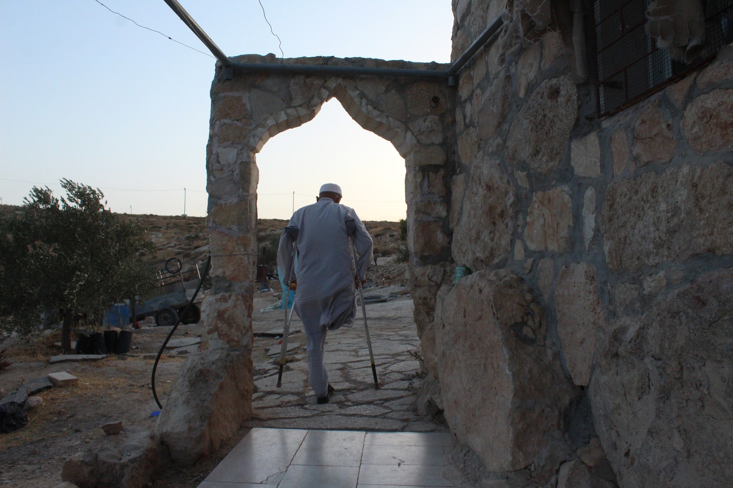 In the nearby Masafer Yatta village of Al-Rakeez, 60-year-old Sheikh Said walked on crutches at sunset. His right leg had been amputated, after he was shot by settlers in April who invaded his land and attacked his 16-year-old son, Elias. Said said a settler shot him at point blank range as he was trying to protect Elias. Israeli soldiers then arrested both him and his son and shackled Said by his wrists and ankles to his hospital bed. After his leg was amputated, he was forced to pay nearly $3,000 in bail for himself and his son.