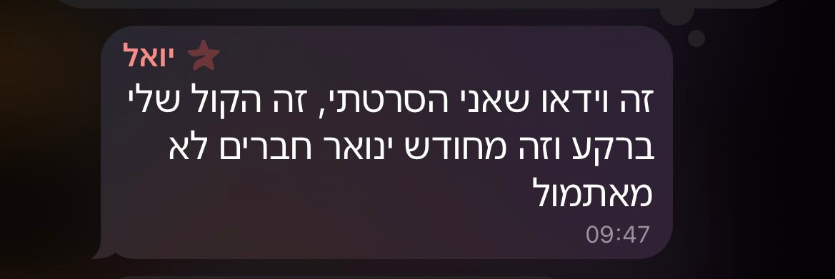 In a separate group on Telegram where the video was also shared, a user named Yoel, with a profile picture of a soldier, asserts that he is the soldier in the video: “This is a video I filmed, this is my voice in the background and it is from January, friends, not from yesterday.”
