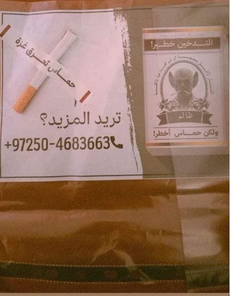 Amid the suffocating blockade, which has led to widespread starvation and hunger, basic goods have become valuable commodities, including items like cigarettes. In April, Israel dropped packs of cigarettes over Gaza with leaflets declaring, “Smoking is dangerous, but Hamas is more dangerous” with a photo depicting slain Hamas leader Yahya Sinwar as an animal with large ears. Next to it is the caption “Hamas is burning Gaza. Want more?” atop a phone number to call.