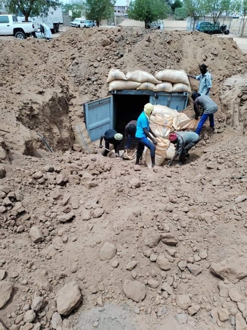 Dawood said the underground rooms were created out of shipping containers left behind at the headquarters of UNAMID, the joint UN and African Union peacekeeping body set up in the years following the outbreak of the Sudanese civil war in 2003. UNAMID completed its mandate in 2020. “Volunteers buried these containers under the ground, covering them with sandbags to hide them and keep them safe,” she said.