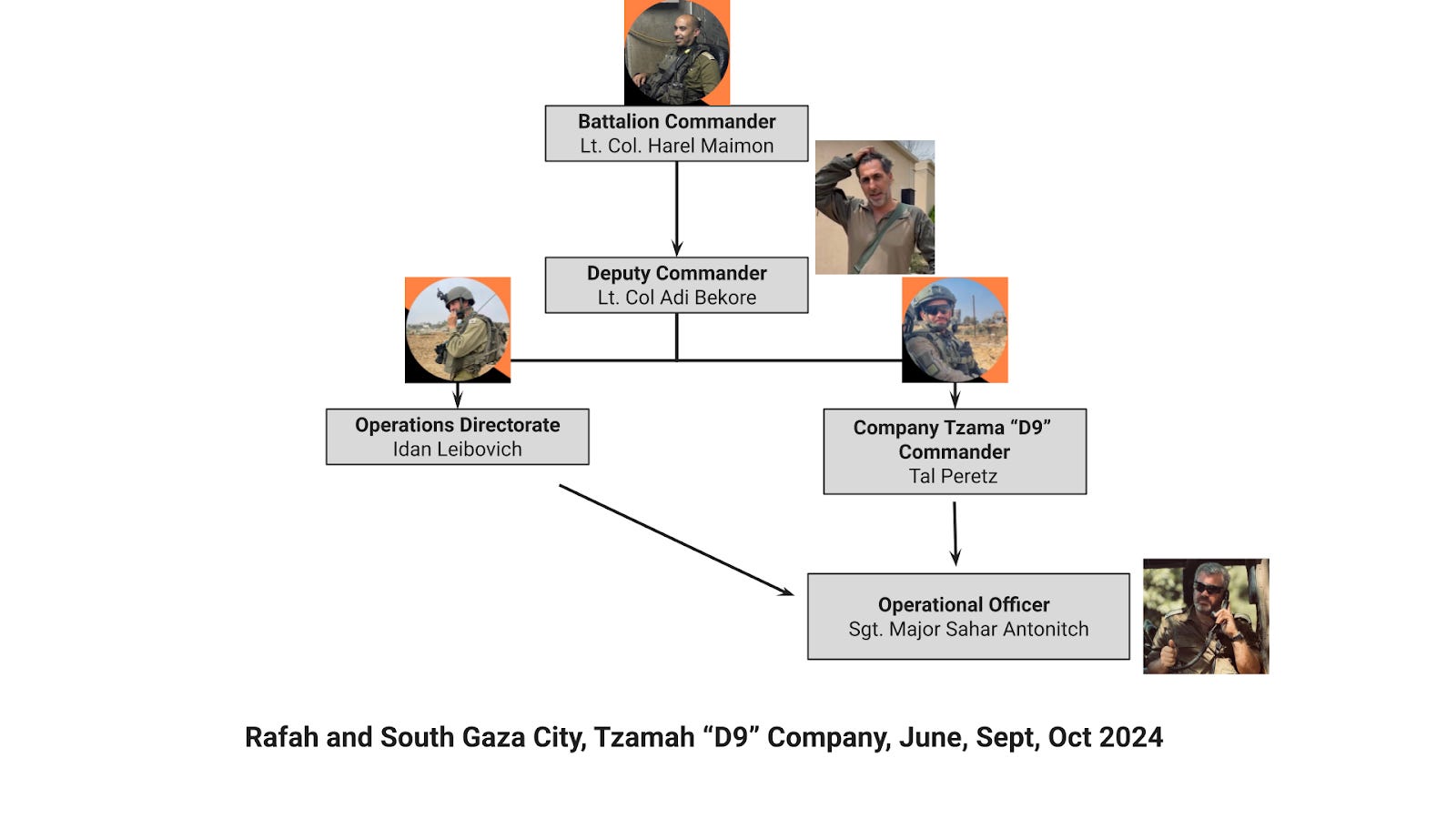 In May, Israel’s offensive pushed south to the city of Rafah, blowing past Biden’s supposed “red line.” The next month, June 2024, the D9 Company of 749 Battalion was deployed to the city for a two-week mission aimed at flattening the remaining homes. The company was under the command of Major Tal Peretz and its Operational Officer Sergeant Major Sahar Antonitch. Footage from June 2 uploaded to the battalion’s Instagram page shows an Israeli soldier named Yossi Nahari from the “Tzama” D9 company demolishing a house in the southern city.