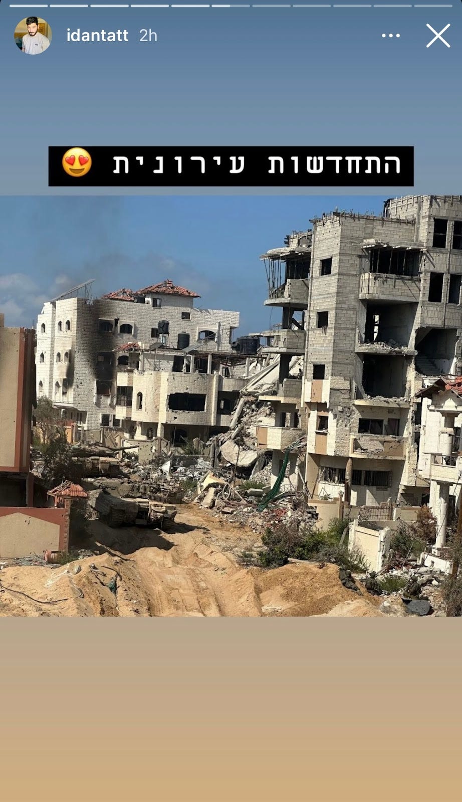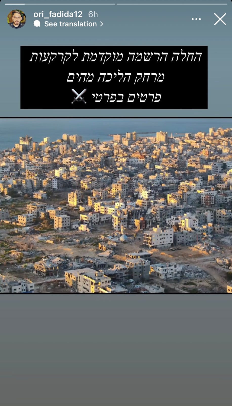 Earlier, on December 3, Fadida posted a video on his Instagram story depicting the detonation of a home in the Shuja’iya neighborhood. He commented, “House by house, street by street, neighborhood by neighborhood ... Everything will be erased from you … until nothing remains of you.”