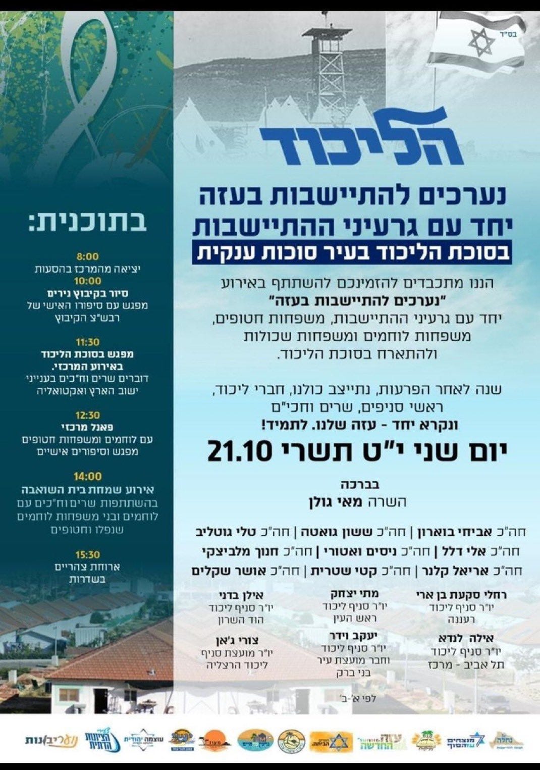 The ruling party in Israel, Likud, led by Prime Minister Benjamin Netanyahu, hasn’t hidden its desire to resettle Gaza. On Monday, it held an event near the border with Gaza in support of resettling it. The event featured Likud ministers, Knesset members, and party members.