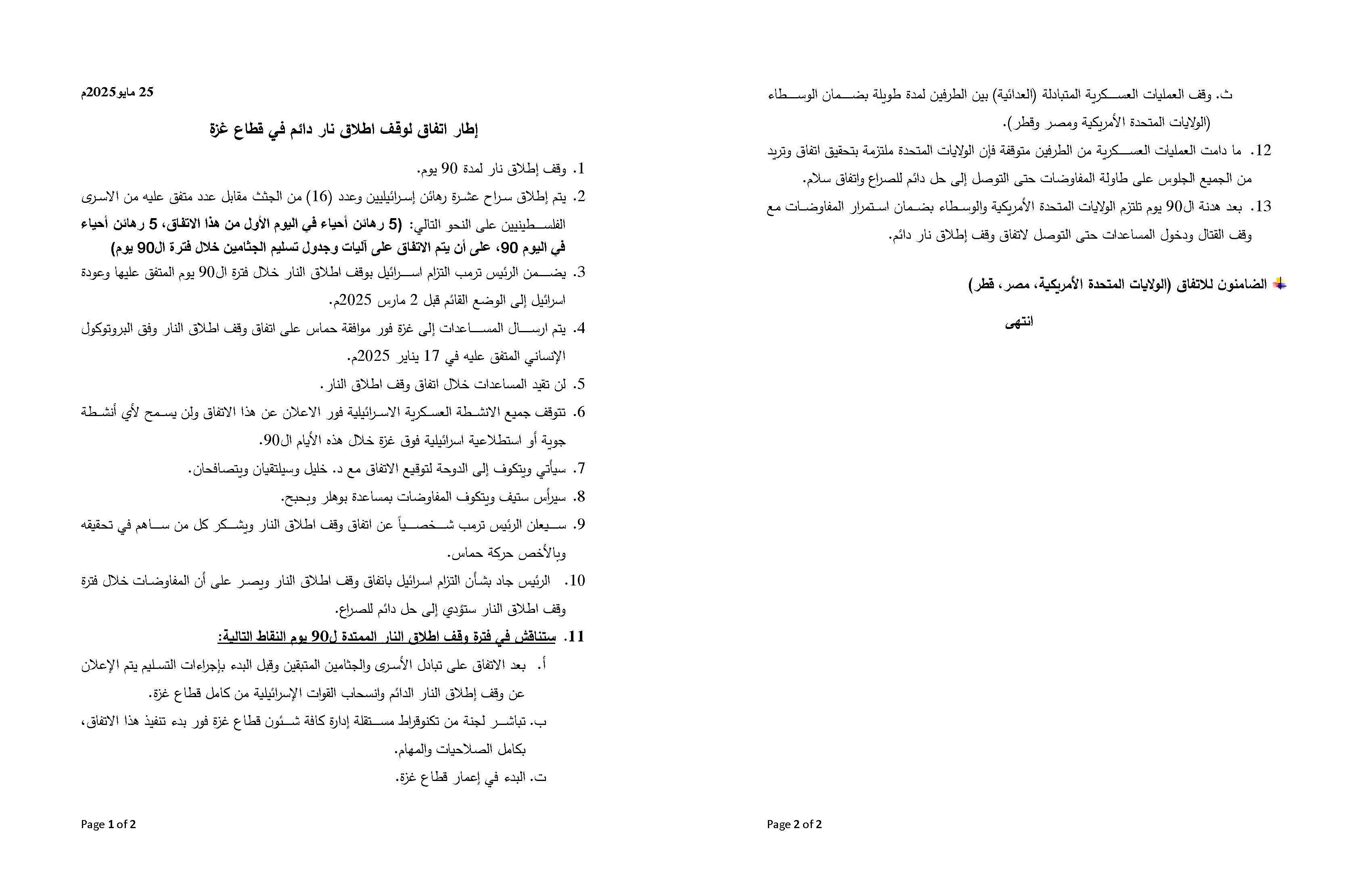 Framework for a Permanent Ceasefire Agreement in the Gaza Strip