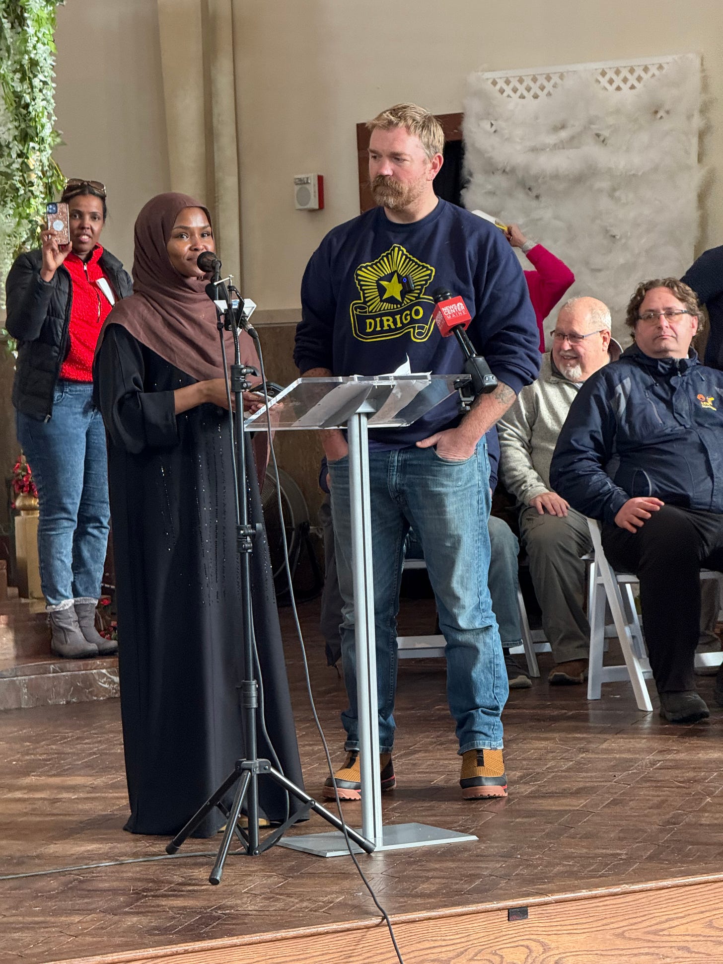 Speakers included Platner, as well as gubernatorial candidates Shenna Bellows, Troy Jackson, Hannah Pingree, and Angus King III; Lewiston Mayor Carl Sheline and Portland Mayor Mark Dion, the leaders of Maine’s two largest cities; and Rep. Chellie Pingree.