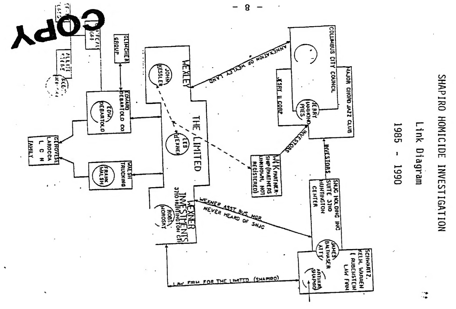 In 1991, the Columbus Police Department was investigating the mob-style assassination of Arthur Shapiro, an attorney whose firm worked for The Limited. In March 1985, Shapiro was due to testify before a grand jury in a major tax evasion case—but the day before his testimony, he was shot twice in the head, at point-blank range, in his car outside a Columbus cemetery.