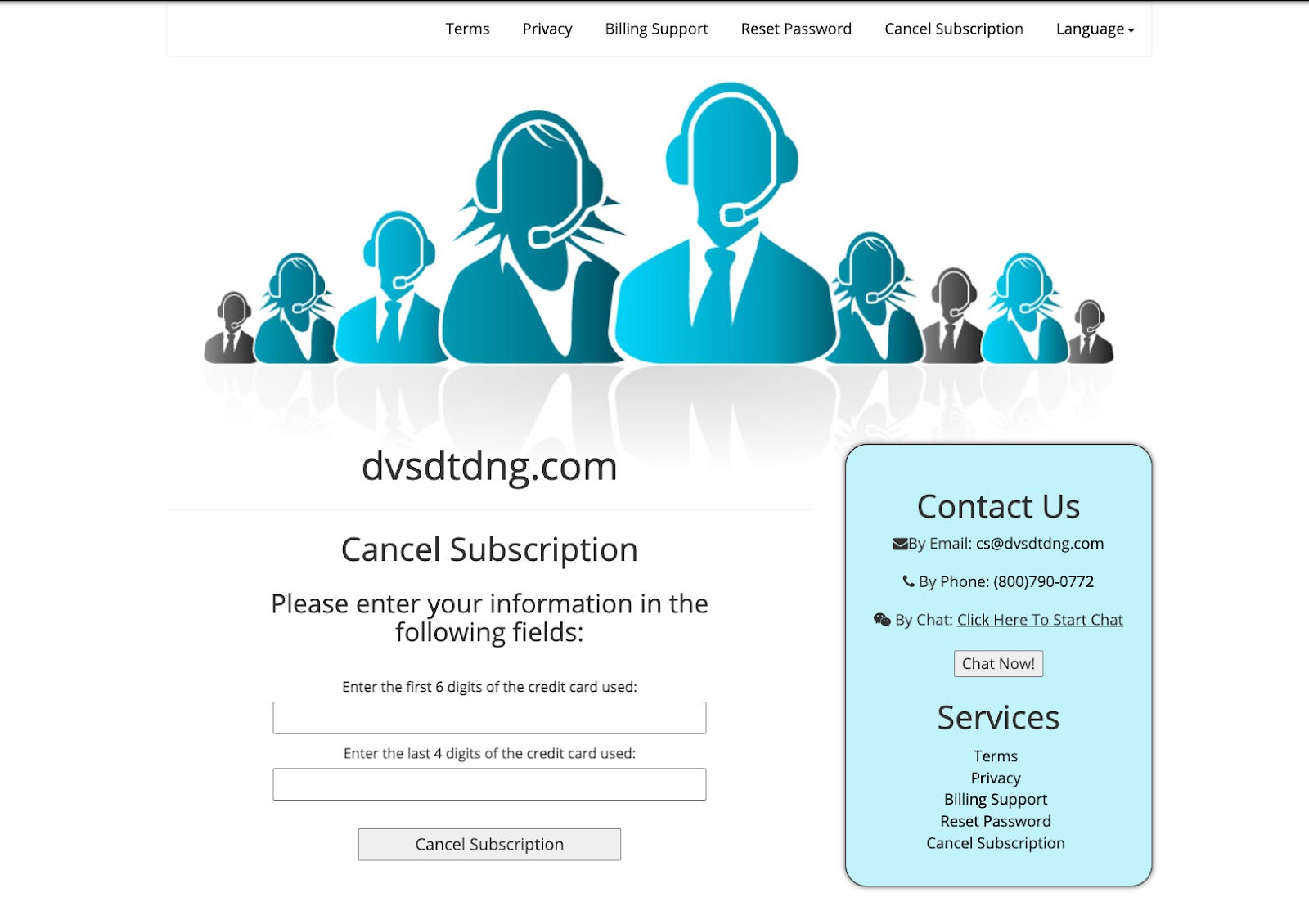 Dozens of these abbreviated URLs appear on websites where consumers from a wide range of countries report scams. When one visits the billing website URLs, there is a page labeled “Cancel Subscription,” which prompts user to enter the “first 6” and “last 4” digits of their bank card to proceed.