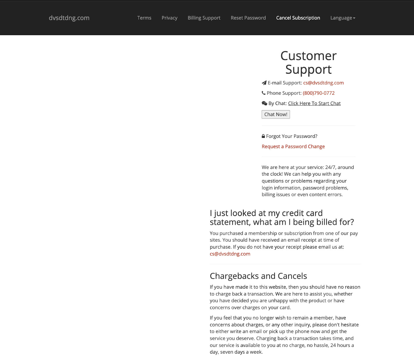 The Dirty Payments investigation was able to create accounts on the dating websites. However, when it came time to pay for a membership, it was impossible to do so. Instead, leaked documents revealed each dating website has a related and abbreviated URL which is used for billing and “customer support”. For example, one dating site named with the main URL attemptingtosweepyouoffyourfeet.com has an associated billing URL attosepepf.com. After Dirty Payments began publishing, these sites appear to have been taken down.