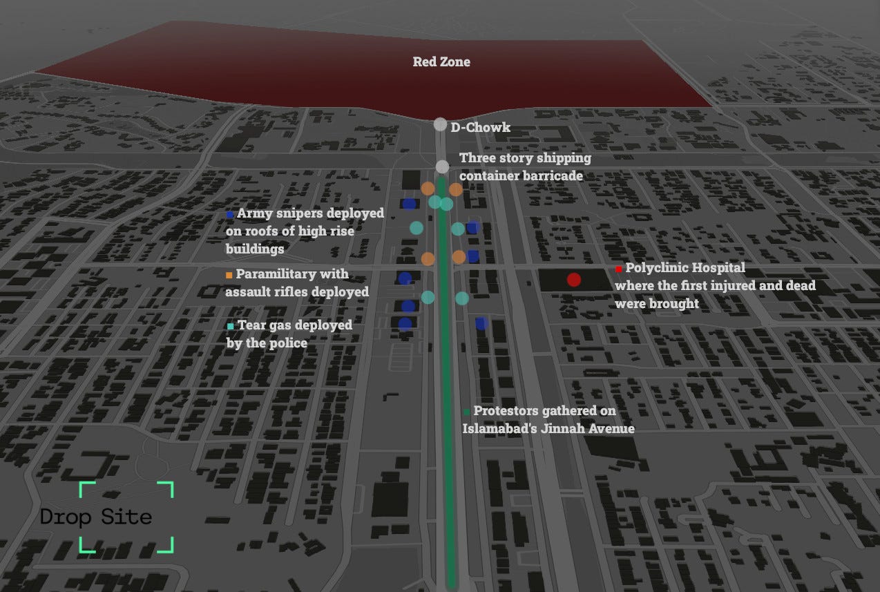 In the run-up to the protests, the Pakistani government shut down social media apps like WhatsApp and called the military into the capital, giving it blanket shoot-on-sight powers. The government had claimed that the protestors would not be able to reach Islamabad. But by the evening of November 26, they had reached the heart of Islamabad, only feet from the central D-Chowk roundabout, the symbolic heart of the Pakistani government. The government mission at this point, according to the source within the Pakistani military, was to repel the protestors from from D-Chowk – the final hill for Pakistan's military-backed government to defend.