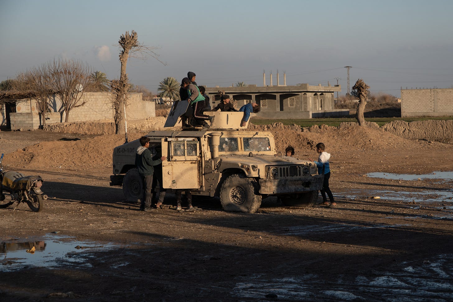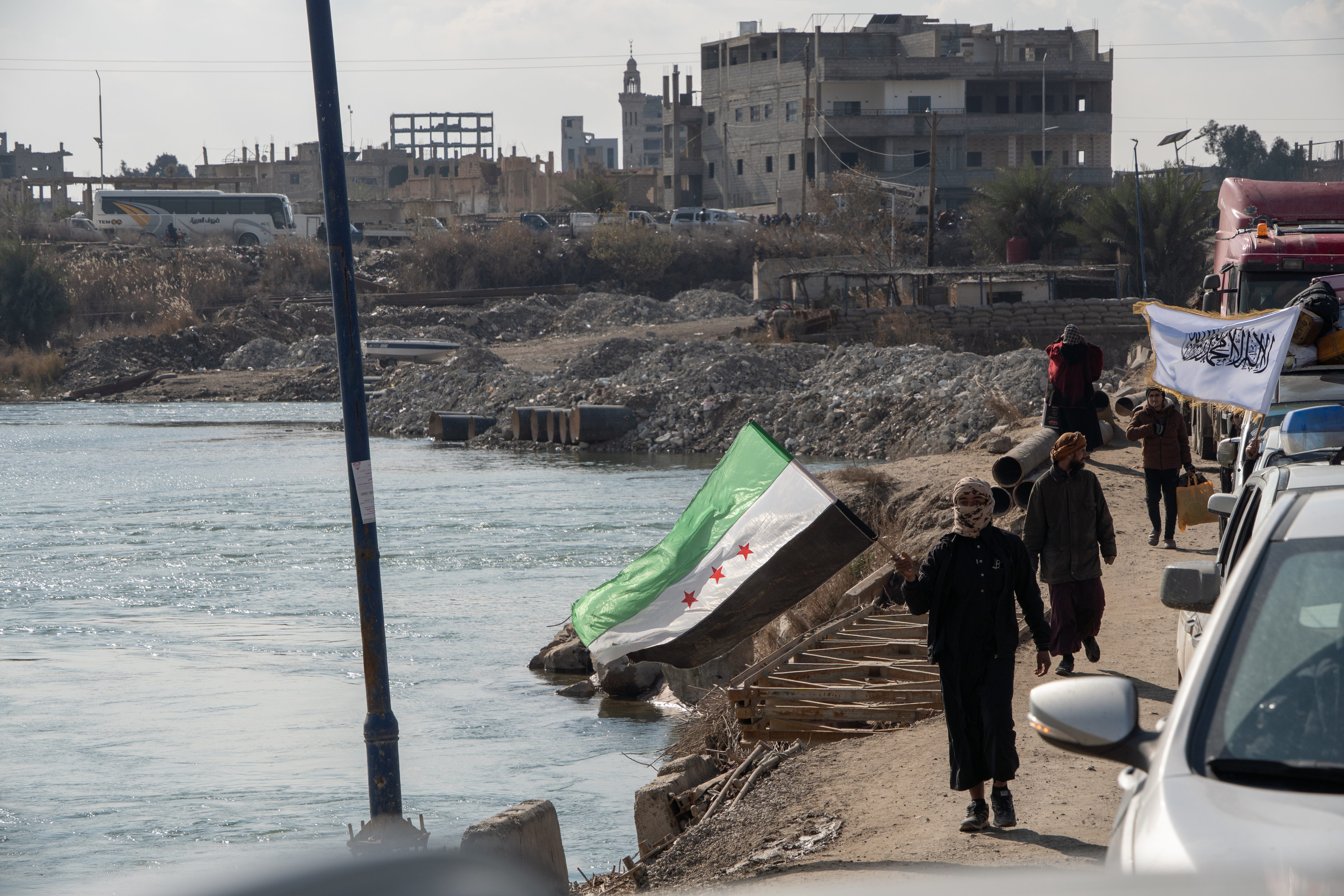 DEIR EZ-ZOUR, SYRIA—On Monday, in Deir Ez-Zour, Syria, huge amounts of military traffic clogged a rickety pontoon bridge, as Syrian government forces moved east across the Euphrates River. The river, which cuts the province of Deir Ez-Zour down the middle, has been the front line between Syrian government forces and Kurdish-majority Syrian Democratic Forces for months. The pontoon bridge was the last remaining crossing point for hundreds of miles; Syrian government forces were pushing forward into the newly captured territory, to deploy alongside their new tribal allies.