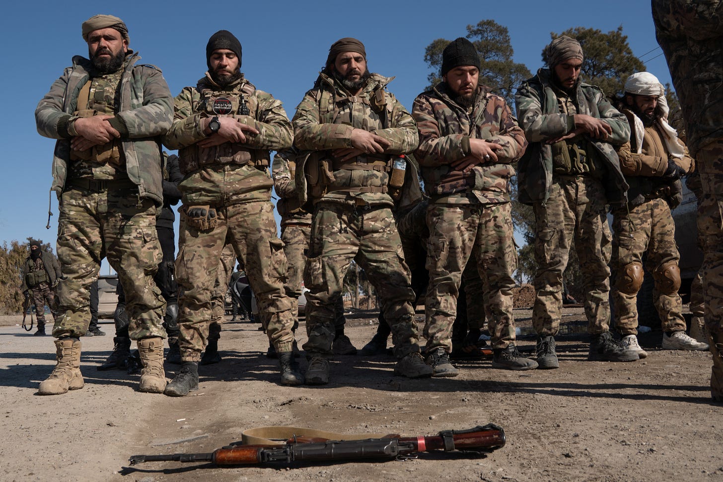 By Tuesday morning, a degree of calm had returned to the city as negotiations to secure an evacuation deal for the SDF fighters positioned at Al-Aqtan prison were underway. Around the prison’s perimeter, though, the Syrian military was moving mortars and heavy rocket launchers into position. Groups of armed men were praying together. Around midday, negotiations collapsed and clashes began shortly afterwards.