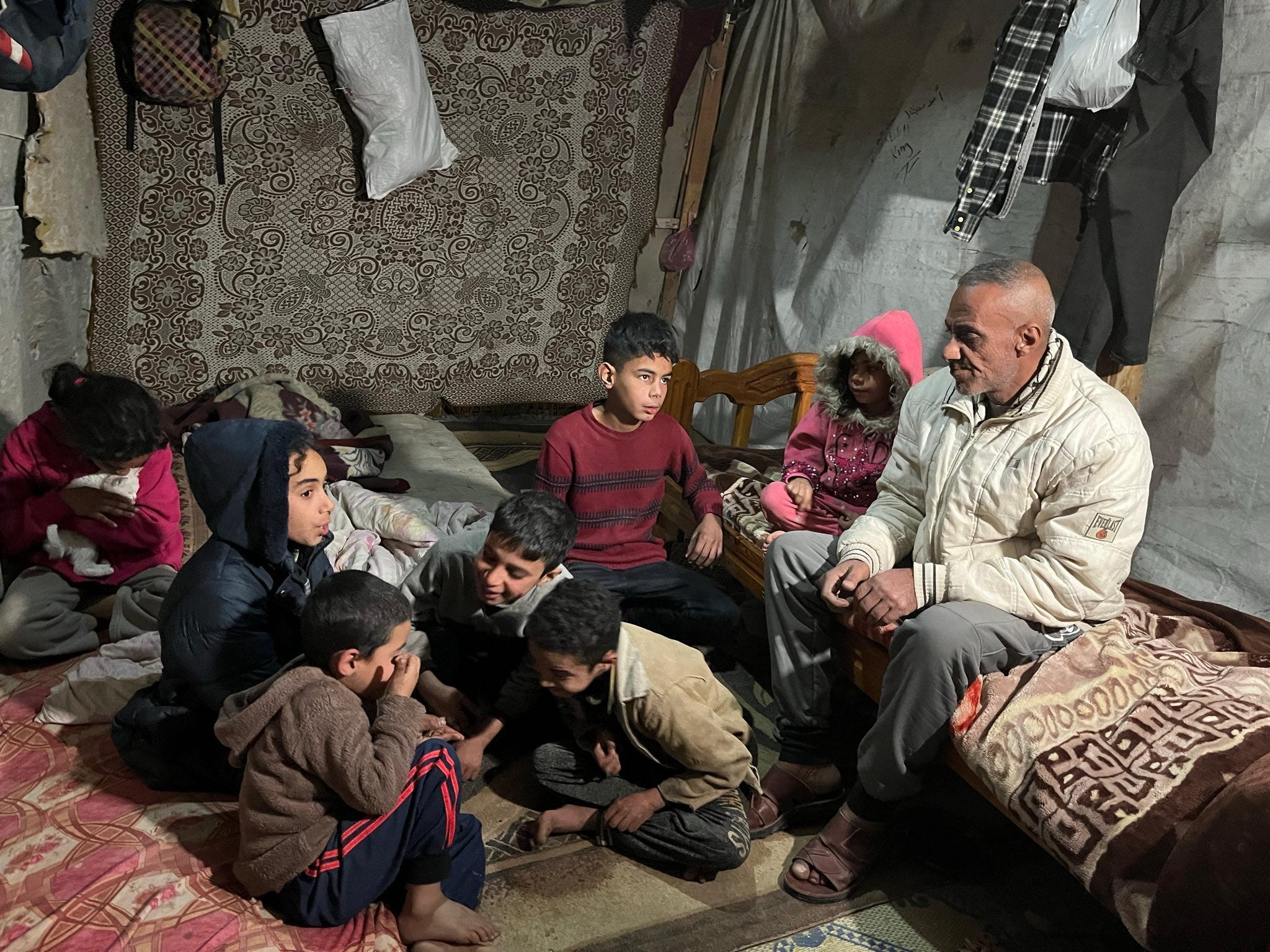 “I have eight children who desperately require everything: food, water, clothes, and medicine. But I am unable to get anything for them because prices are skyrocketing, staples are rarely available, and clothes need huge money to purchase,” he said. “We are shaking with cold every single day in our tent located in a very open area. The bitter fact is that we live on the streets where no protection, warmth, or safety can be seen. It is hellish. All that we have are two blankets and three mattresses. Our tent has been flooded by the rain because I can’t provide a tarp. My children are always barefoot and have only one piece of clothing on their bodies. They always have skin diseases and severe gastroenteritis because of the glacial weather. Yet, I can’t provide any medications, food, or good shelter for them. What else should I tell you? There are simply no words.”